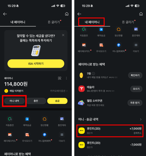 A 카카오페이머니를 사용하신 경우 결제 취소 및 예매실패 시 카카오페이머니 잔액으로 원복됩니다.